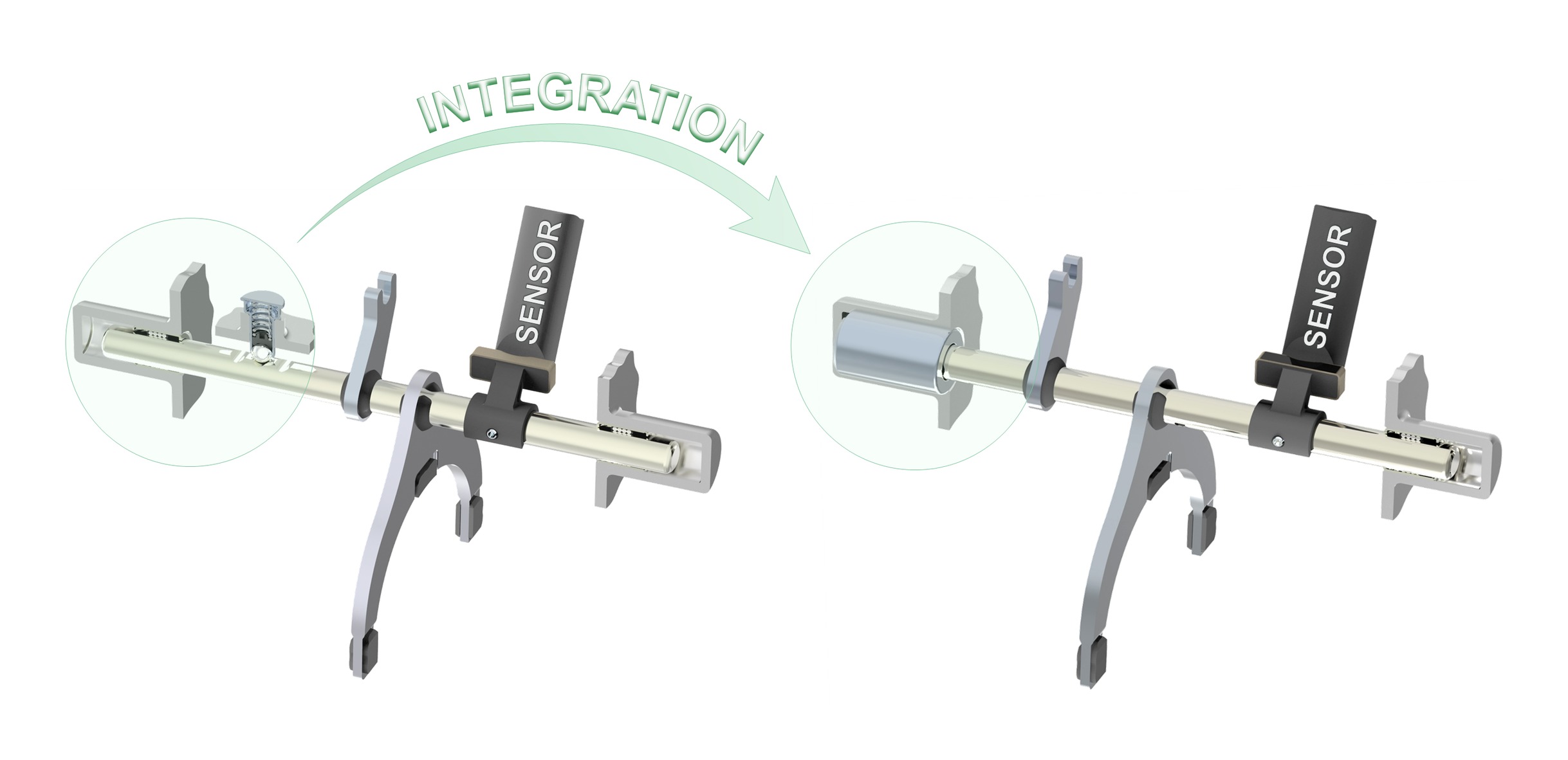 Soll zusätzlich die Gangposition der Schaltgabel detektiert und der Schaltweg gemessen werden, lässt sich der Integrationsgrad durch die Implementierung einer Sensorik in das Rastierlager weiter steigern. Die Messung findet dann direkt im Lager statt, was eine hohe Linearität und Messgenauigkeit zur Folge hat.
