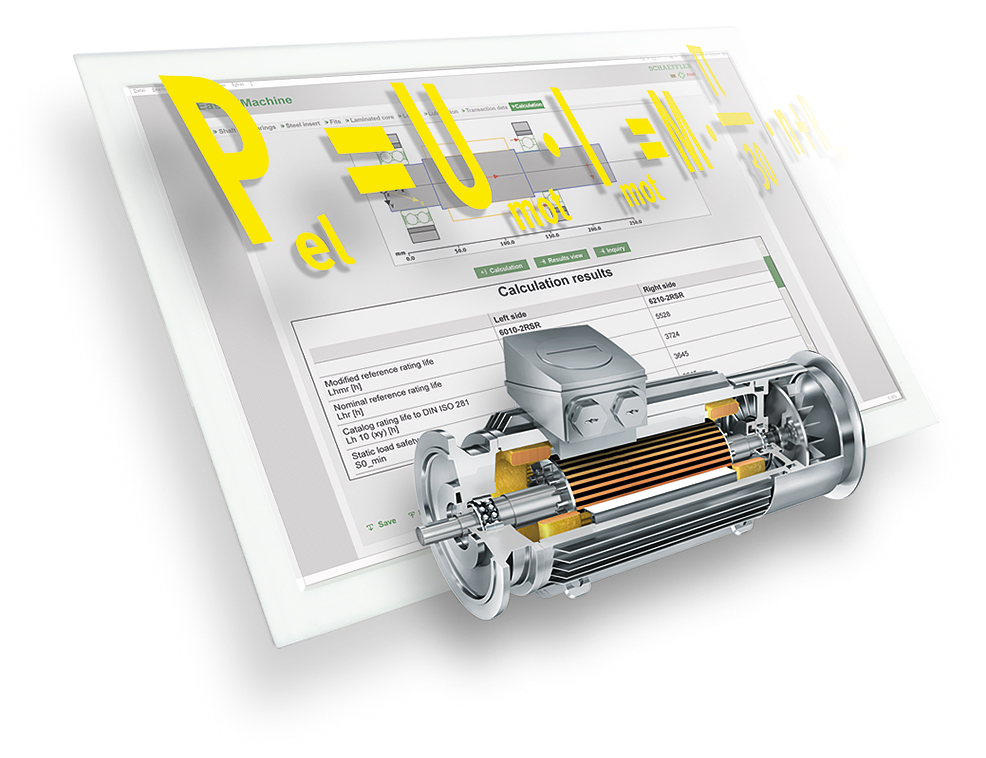 Unter http://bearinx-online-easy-emachine.schaeffler.com lassen sich waagerechte, senkrechte und beliebig im Raum orientierte E-Motoren und Generatoren berechnen. Verschiedene Lagerungsvarianten können schnell und sicher durchgespielt und miteinander verglichen werden. Es stehen Gewichte von Welle, Blechpaketen, Wicklungen, der magnetische Zug sowie weitere frei konfigurierbare Belastungen zur Auswahl. Damit lassen sich Riemenscheiben, Zahnräder und Unwuchten bei verschiedenen Drehzahlen und Lastfällen modellieren.