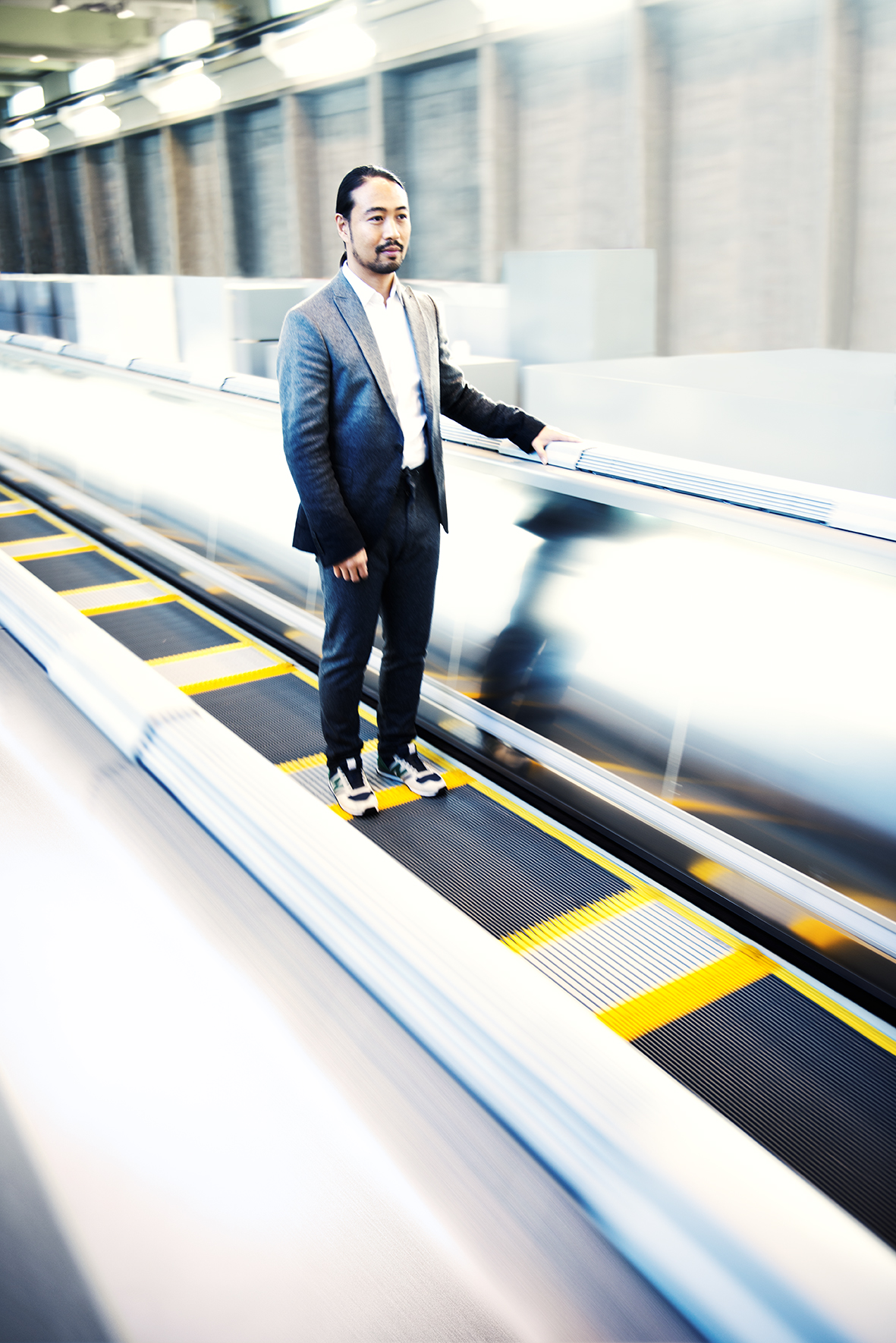 Im Eingangsbereich liegen die Alu-Paletten eng übereinander, bei steigender Geschwindigkeit ziehen sie sich auseinander, um sich gegen Ende wieder zusammenzuschieben. Der revolutionäre Antrieb, der auf der Linearmotor-Technik der Magnetschwebebahn Transrapid basiert, sorgt dafür, dass das Band mit normaler Schrittgeschwindigkeit von 0,65 m/s (2,35 km/h) anläuft, bequem auf bis zu 2 m/s (7,2 km/h) beschleunigt und vor dem Verlassen des Systems wieder auf die ursprüngliche Geschwindigkeit verzögert wird. Wenn der Fahrgast zudem über das Band läuft, können Geschwindigkeiten von bis zu 3,3 m/s (12 km/h) erreicht werden.