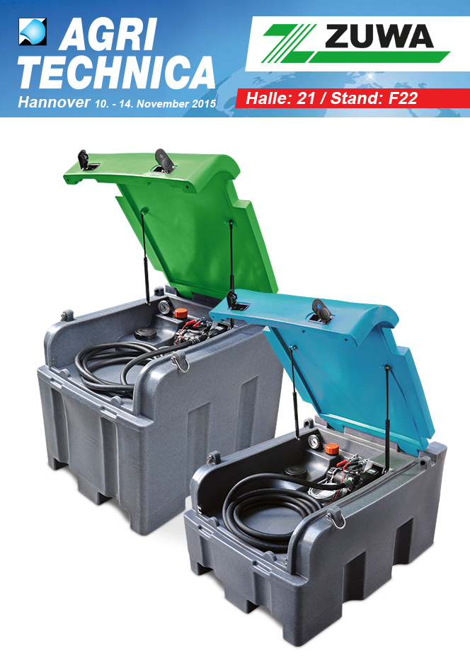 Auch 2015 war Pumpenhersteller ZUWA wieder als Aussteller auf der AGRITECHNICA vertreten. Unter anderem wurden Dieseltankstellen mit Tankdatenverwaltung sowie Ölpumpen, Schmutzwasserpumpen und Pumpen für AdBlue gezeigt. Dieses Jahr neu bei ZUWA: Mobiltanks für Diesel und AdBlue.